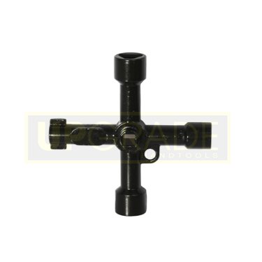 Die-cast zinc multifunction key suitable for gas meters, opening service meter cupboards, stop cocks and taps. Fittings: 2 x Square. Tri-Square, Double Pin.