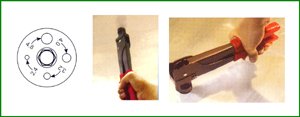 * Easy to use, fast and efficient. * Quick change riveting head to fit job demand without any tool. * Horizontal or vertical use. * SCM4 steel jaw. * Rigid metal frame. * Rivet size: 2.4/3.2/4.0/4.8mm diameter.