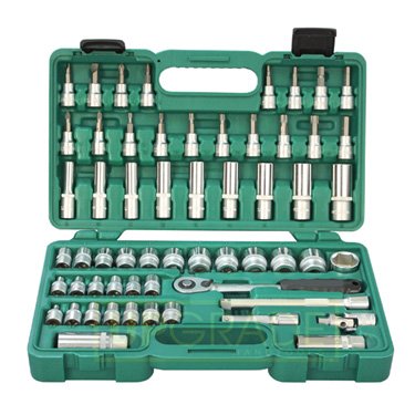 18pc 3/8" socket bits, Phillips #2, #3, Flat 5.5mm, 8mm, Torx #2, #3, Hex H4, H5, H6, H7, H8, Star T20, T25, T27, T30, T40, T45, T50 |